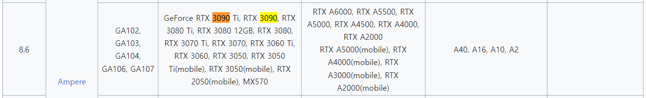 RTX 3090의 경우 Compute capability가 8.6이다. 이제 이걸 가지고...