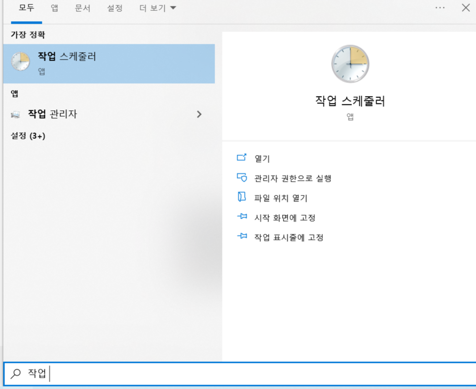 1. 작업 스케쥴러를 검색해서 들어간다.