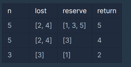 전체 학생의 수 n, 체육복을 도난당한 학생들의 번호가 담긴 배열 lost, 여벌의 체육복을 가져온 학생들의 번호가 담긴 배열 reserve가 매개변수로 주어질 때, 체육수업을 들을 수 있는 학생의 최댓값을 return 하도록 solution 함수를 작성해주세요.
