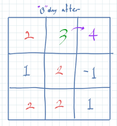 3일이 흐르면 그래프에는 4가 생긴다.